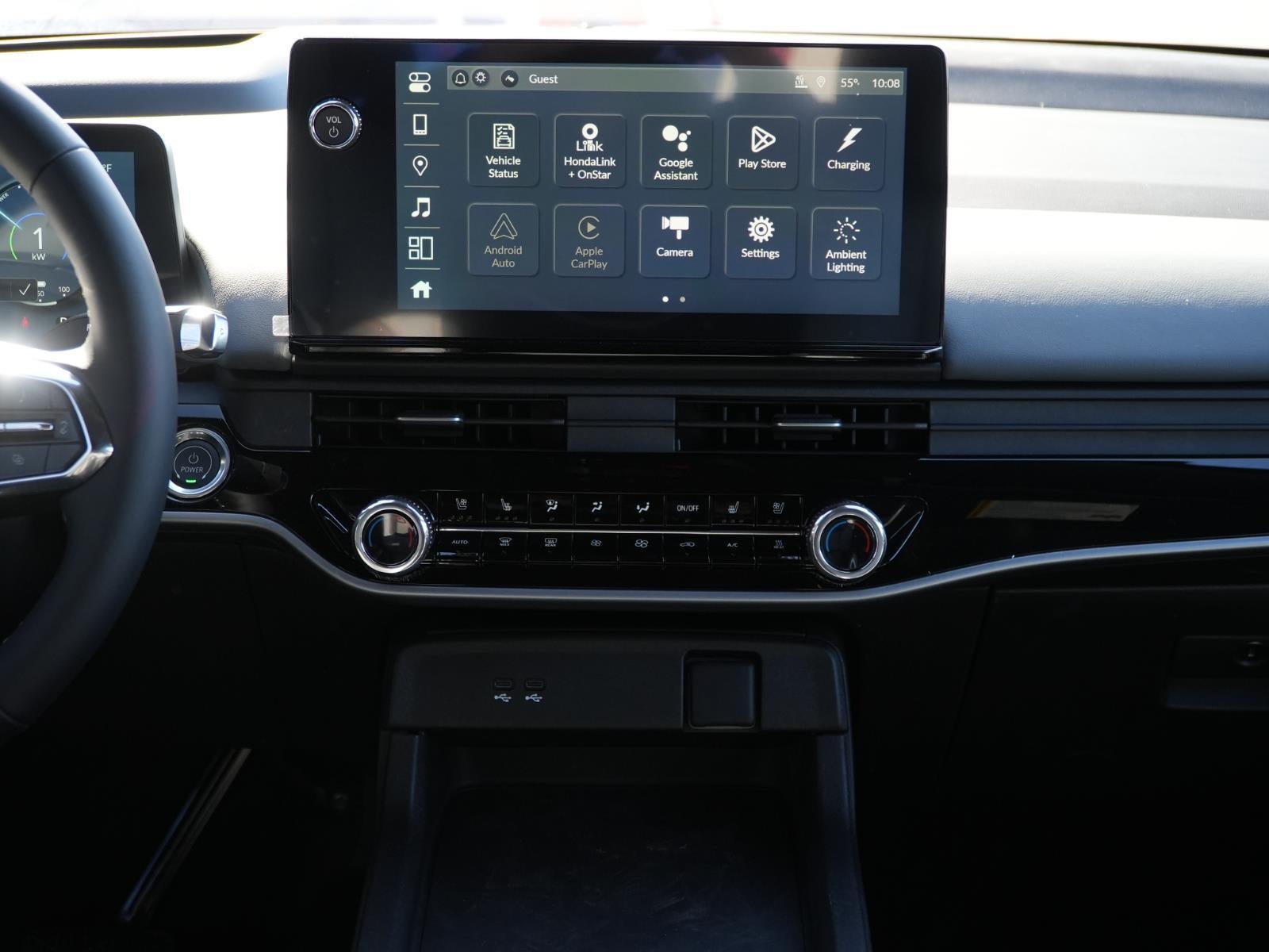 - Radio: Bose Premium Audio System -inc: 12 speakers, 11.3" color touchscreen display, Google built-in, wireless Apple CarPlay and Android Auto compatibility, Bluetooth® streaming audio, USB-C audio interface w/2 charging ports in front console, SiriusXM (All SiriusXM services require a subscription, sold separately by SiriusXM after the trial period, If you decide to continue service, the plan you choose will automatically renew at the then-current rates, Fees and taxes apply, See the SiriusXM customer agreement and privacy policy at www.siriusxm.com for full terms and how to cancel, which includes calling 1-866-635-2349, Available in the 48 contiguous U.S, and D.C, Some services and features are subject to device capabilities and location restrictions, All fees, content and features are subject to change, SiriusXM, Pandora and all related logos are trademarks of Sirius XM Radio Inc, and its respective subsidiaries), Wi-Fi hotspot capability, wireless phone charger and HondaLink connected by OnStar